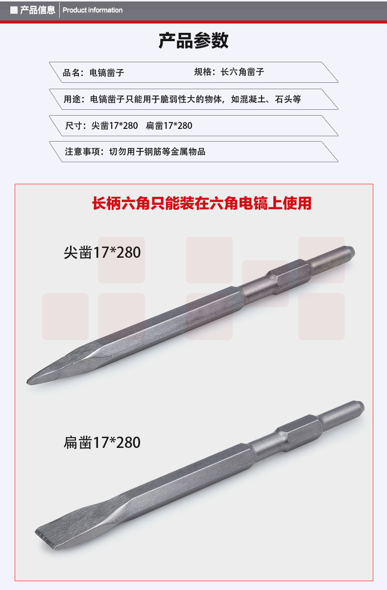 大地(DADI)17*280 尖 长六角钢凿电镐镐尖镐钎凿子 尖头