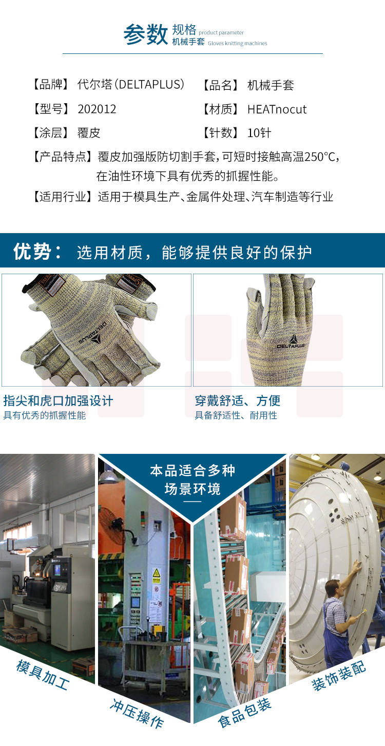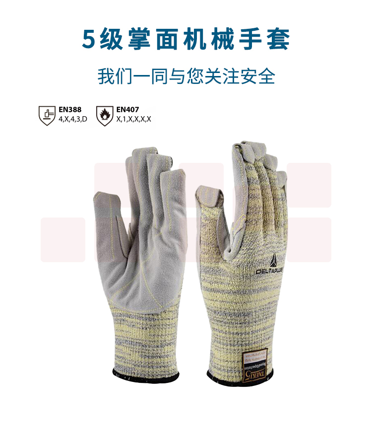 代尔塔 202012 5级掌面牛皮防割手套 耐油防250℃高温