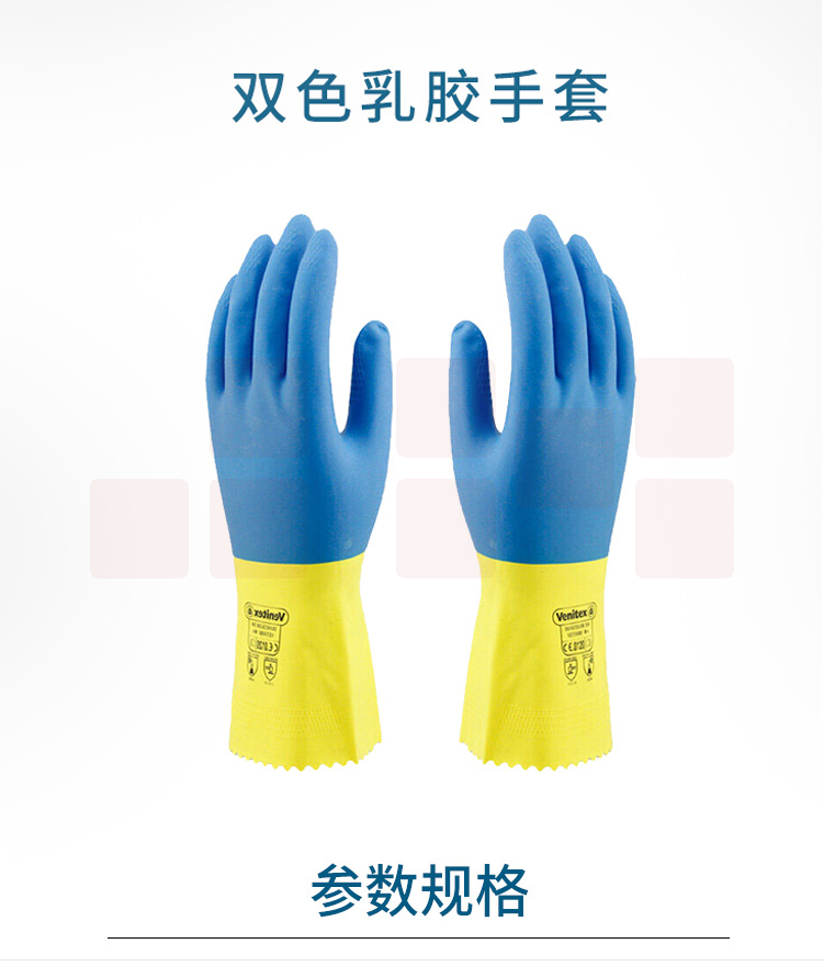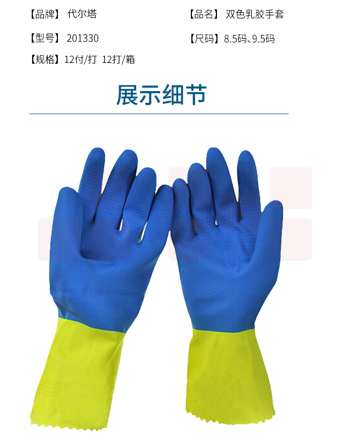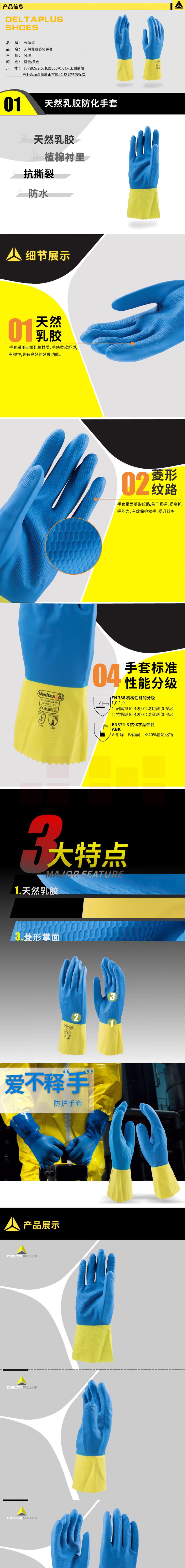 代尔塔 201330 防化手套双色浸胶天然乳胶植棉衬里实验手套