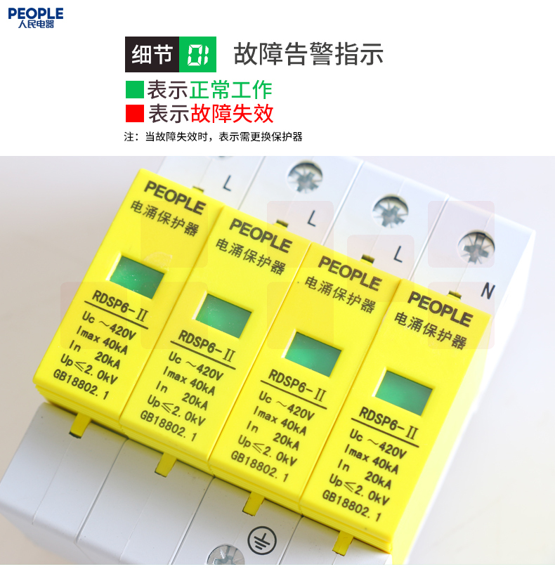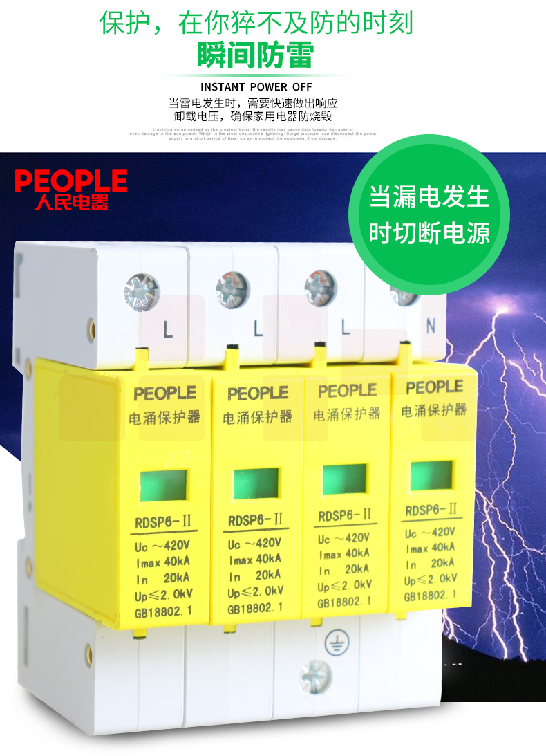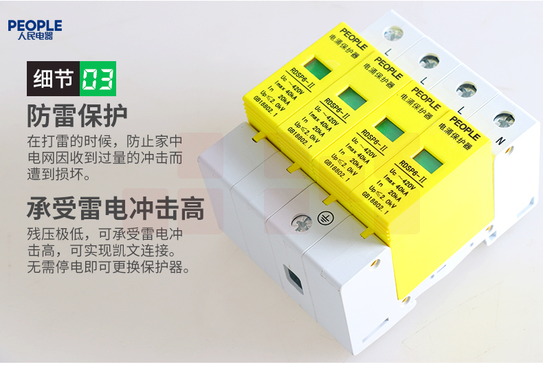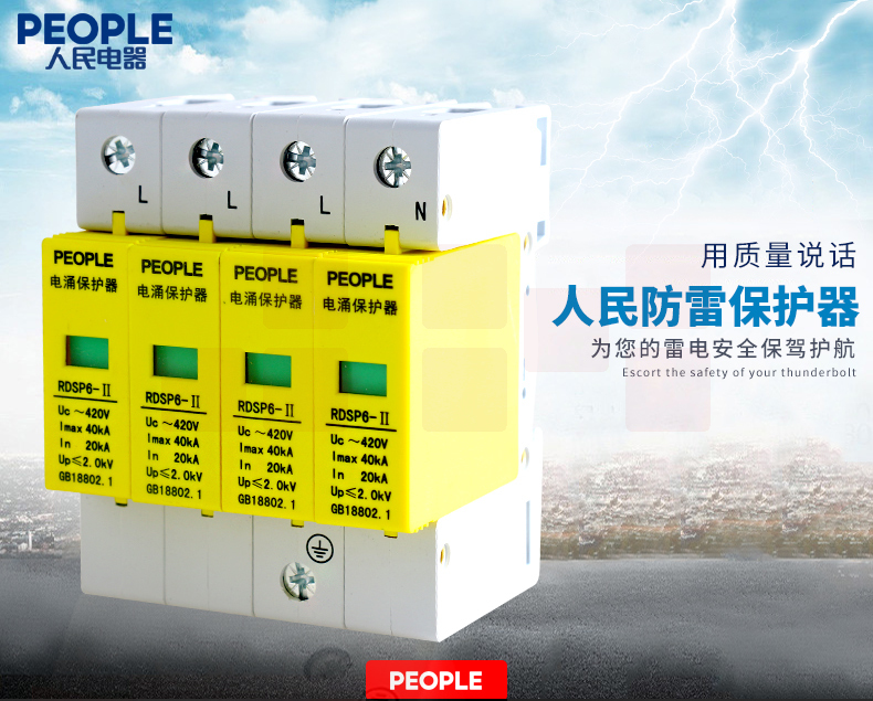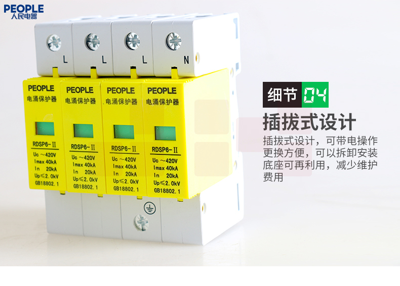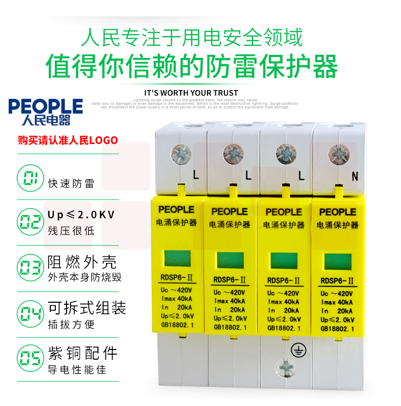 人民电器 三相浪涌保护器4P 防雷器电涌保护开关RDSP6-40KA 380V Uc420