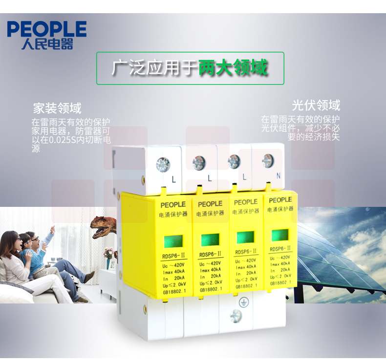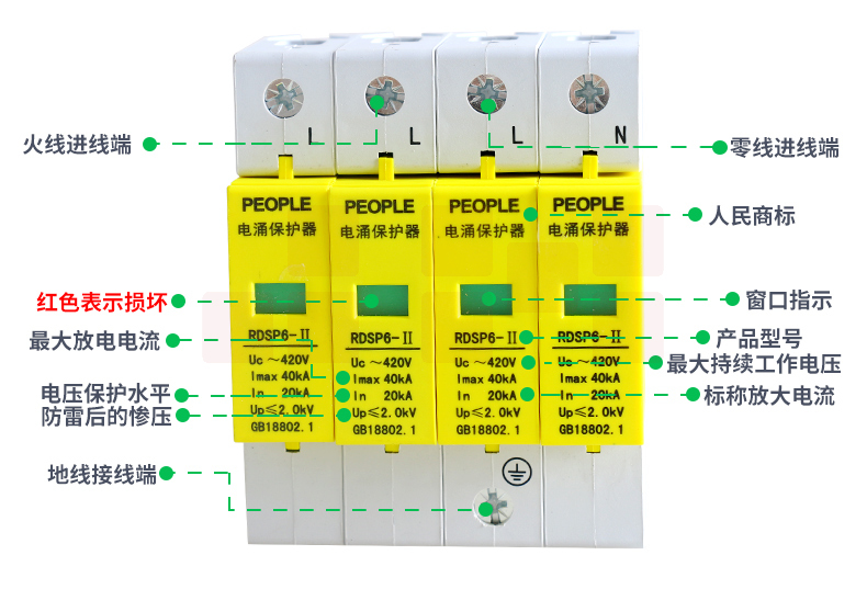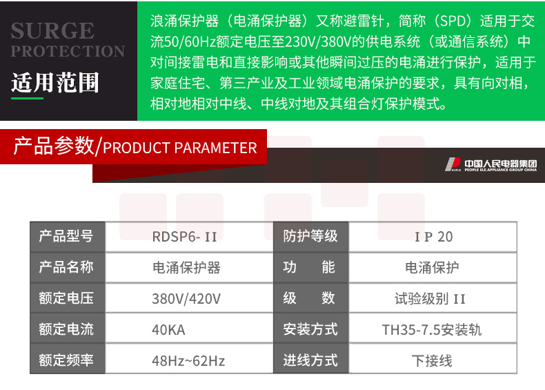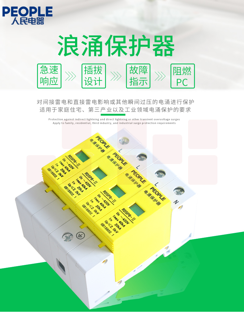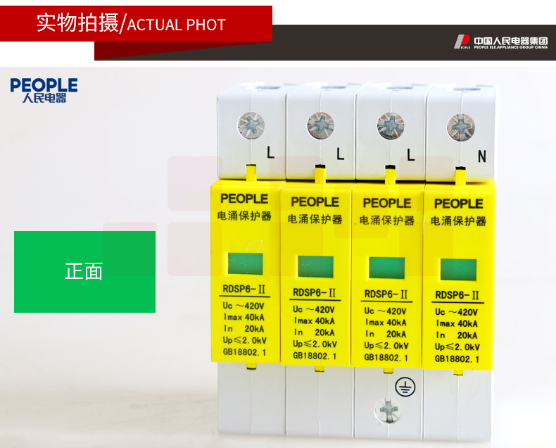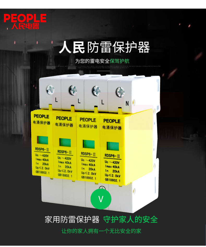 人民电器 三相浪涌保护器4P 防雷器电涌保护开关RDSP6-40KA 380V Uc420