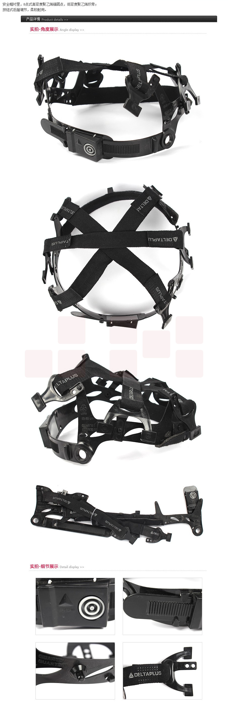 代尔塔 102024 织带按钮安全帽衬里 HARNESS5 黑色 10包/箱 头部防护