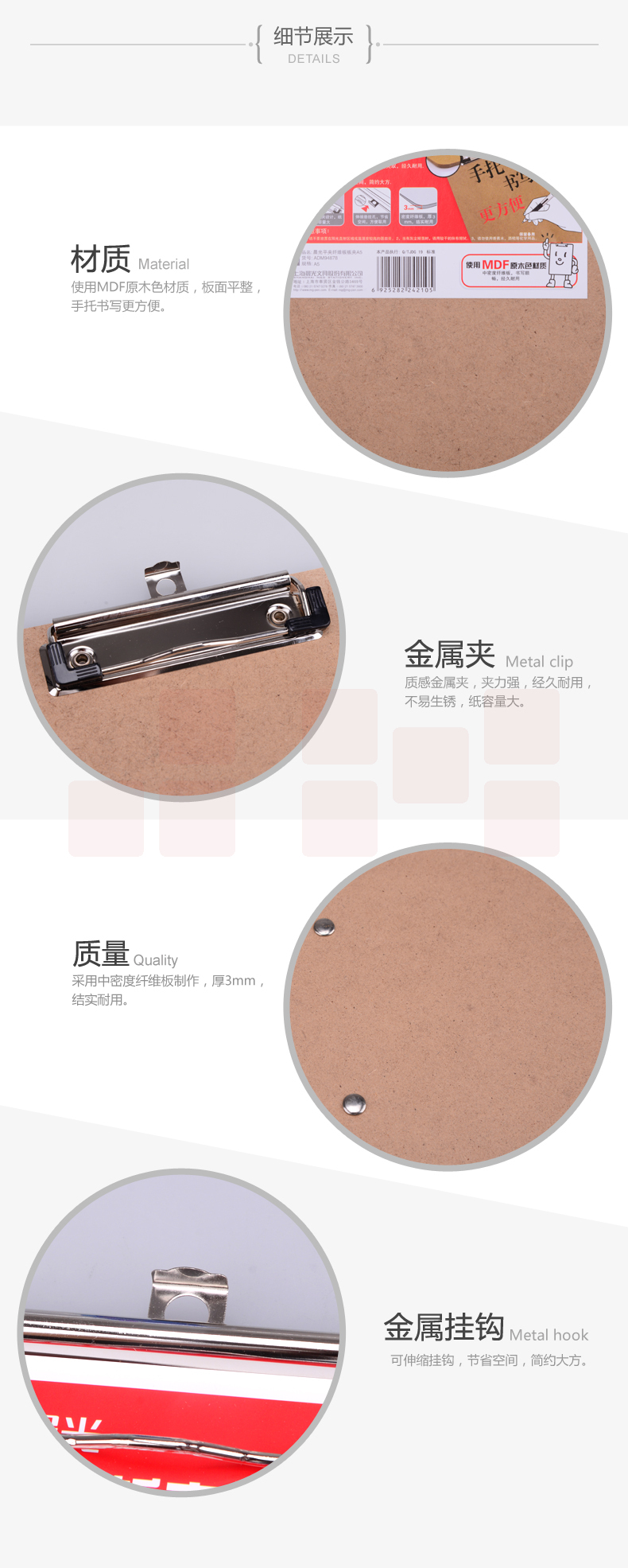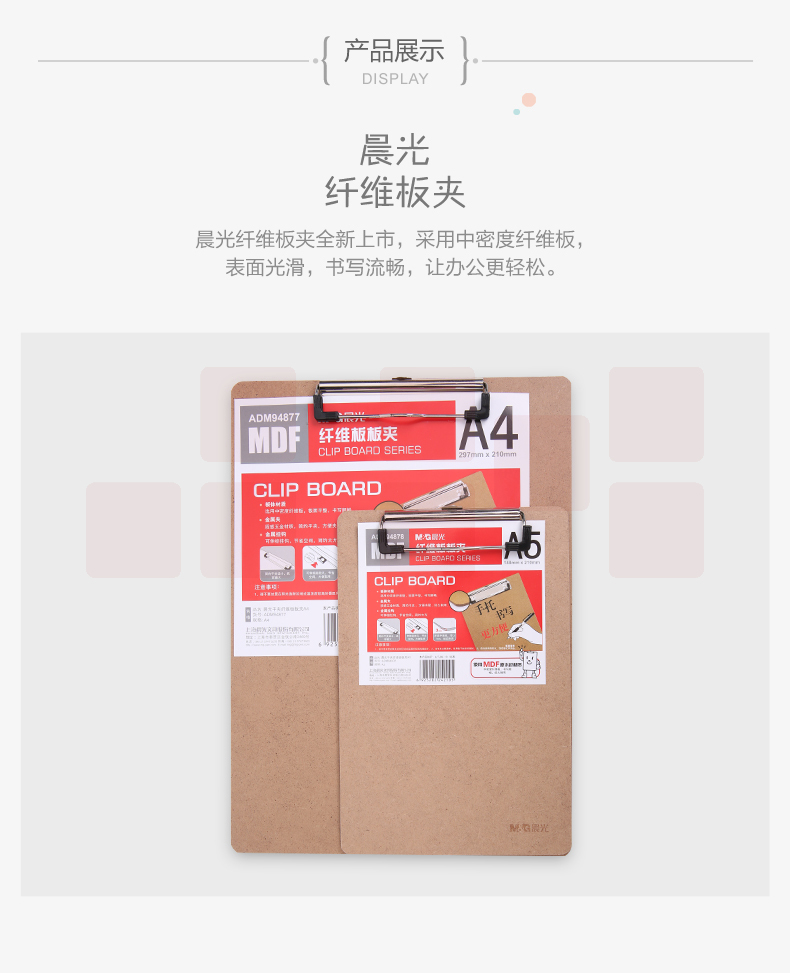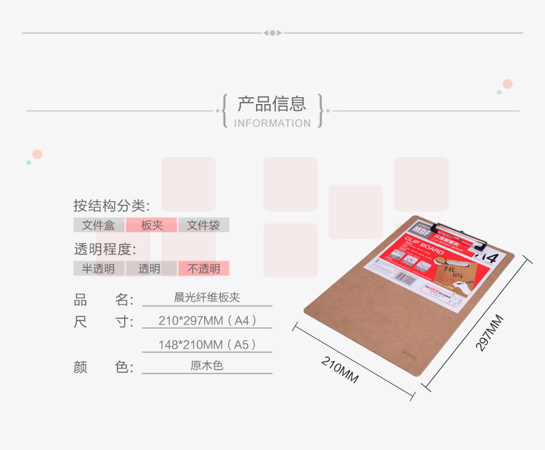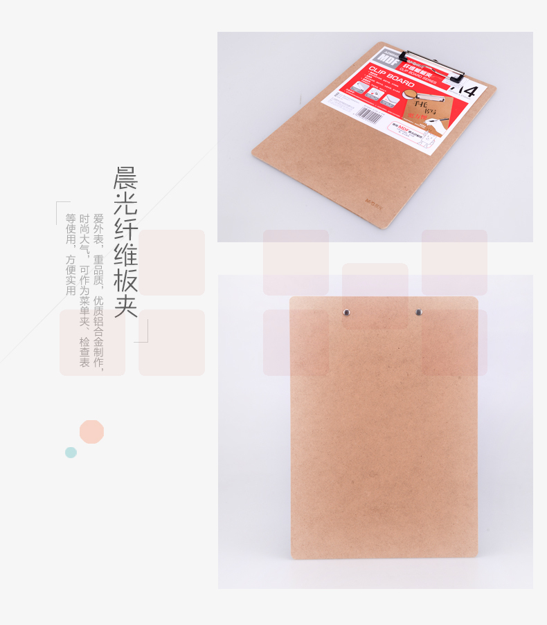 晨光 A4原木色纤维板书写板夹 记事夹文件夹 写字垫板 ADM94877