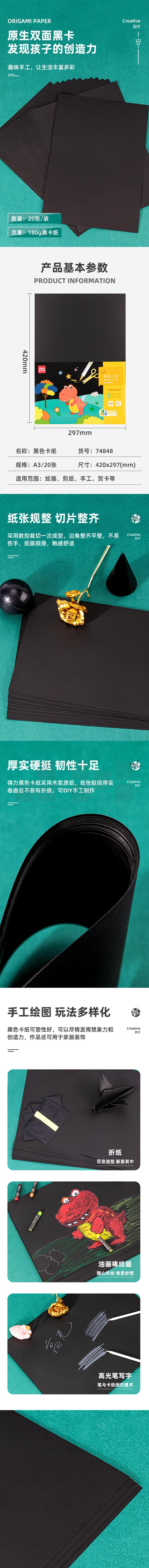 得力 A3黑色卡纸 手工折纸彩纸 美术课堂DIY手工纸 20张 74848