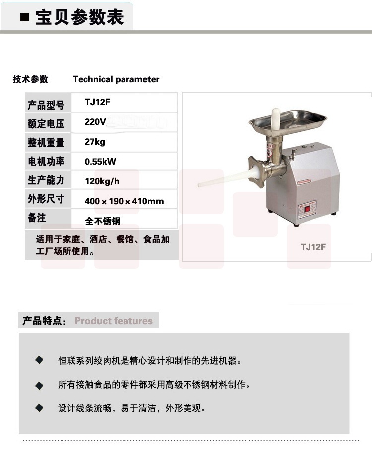 恒联绞肉机TJ12H 0.55KW/220v