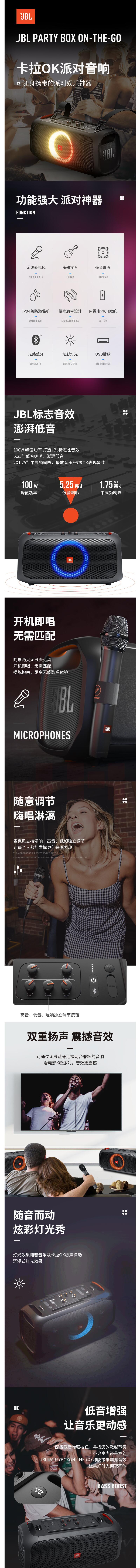 JBL PARTYBOX ON-THE-GO音响 音箱 家庭影院 家庭KTV卡拉OK套装 蓝牙音箱 货号:WY