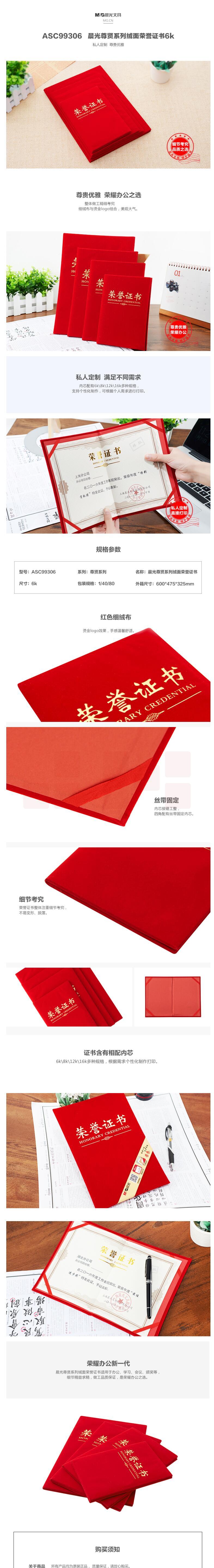 晨光 6K荣誉证书 单本装含芯 297mm*216mm ASC99306