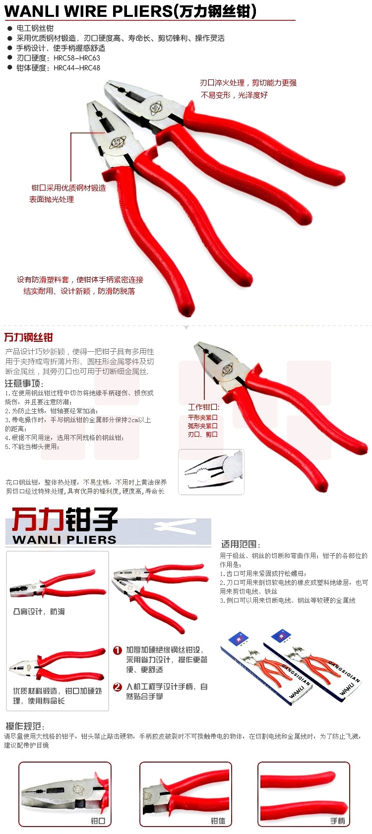 万力(WANLI)万力一级钢丝钳老虎钳克丝钳电工钳200MM8‘’