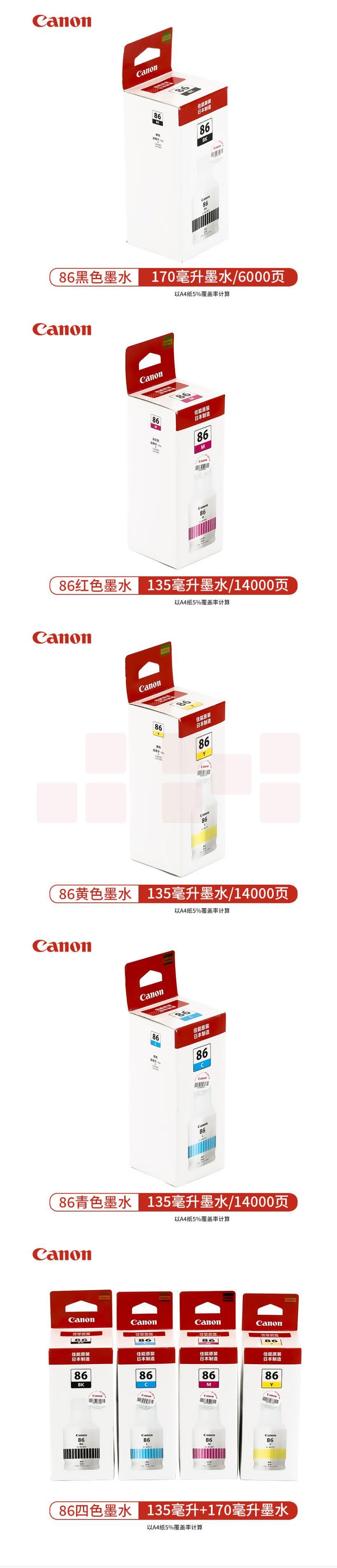佳能 GI-86原装红色墨水GI-86 M 约14000页 适用GX系列GX3080/4080/5080/6080/7080