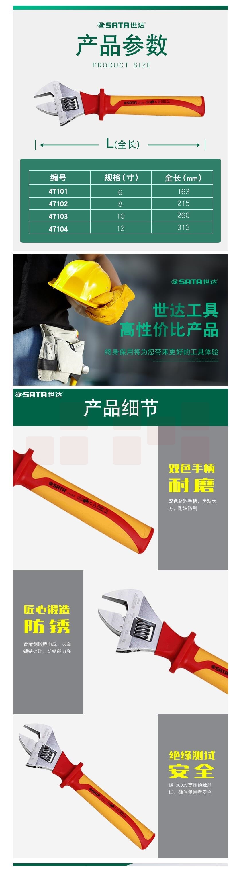 世达(SATA)47102 VDE绝缘耐压活动扳手8 47102 VDE绝缘耐压活动扳手8"