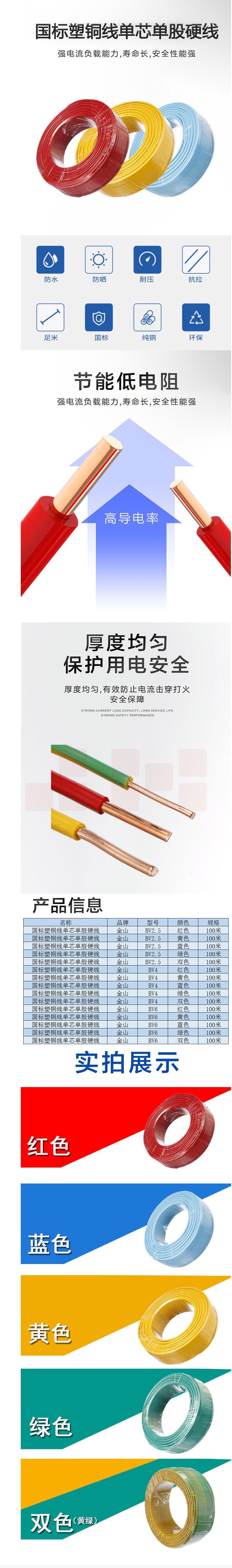 金山 BV2.5平方 100米/盘 单股 国标阻燃塑铜线 (红蓝绿黄双色 下单备注颜色)