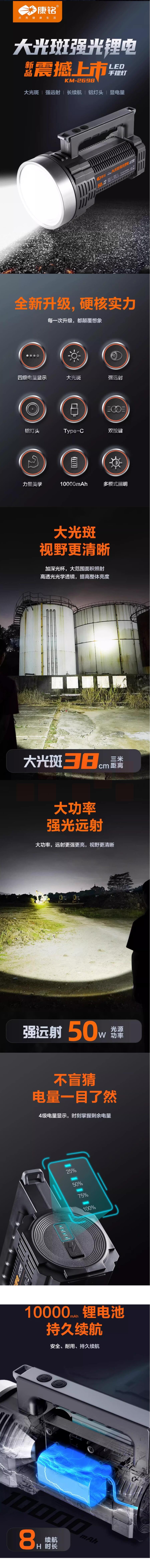 康铭手电筒强光充电超亮探照灯手提灯KM-2697