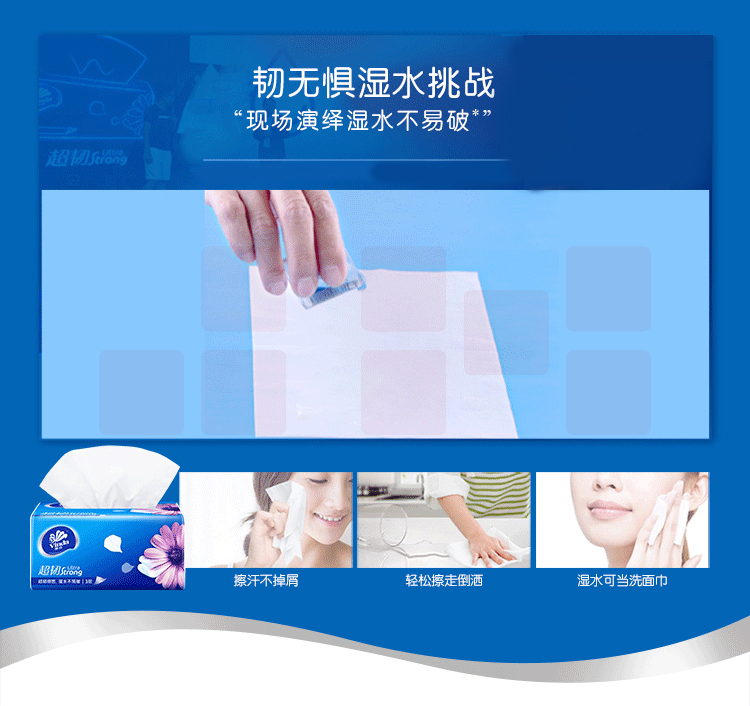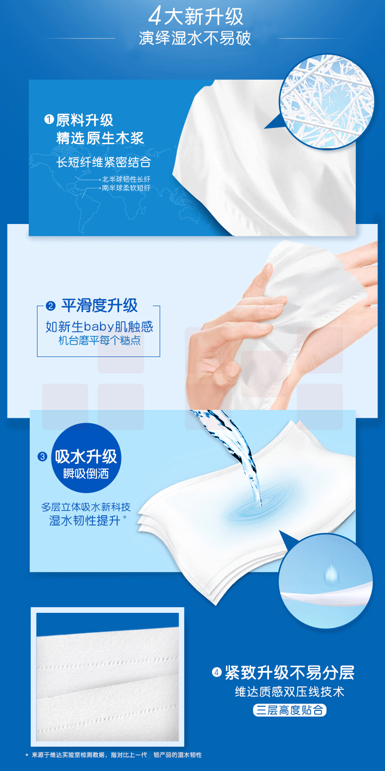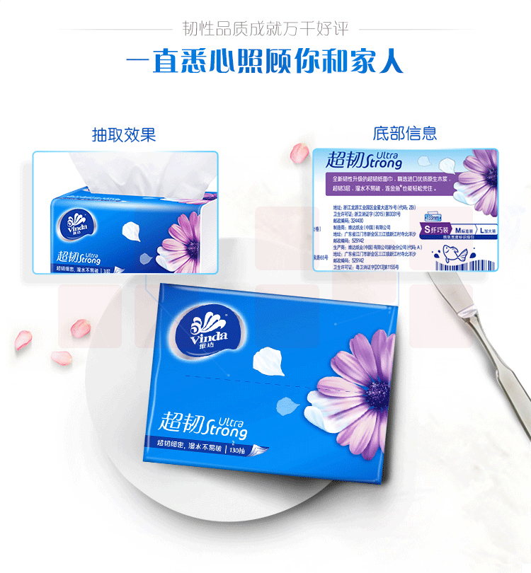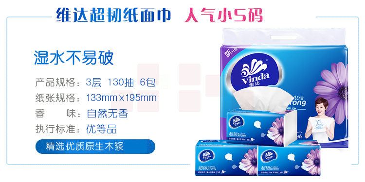 维达 V2239 蓝色经典130抽3层软抽纸 6包/提 (8提)