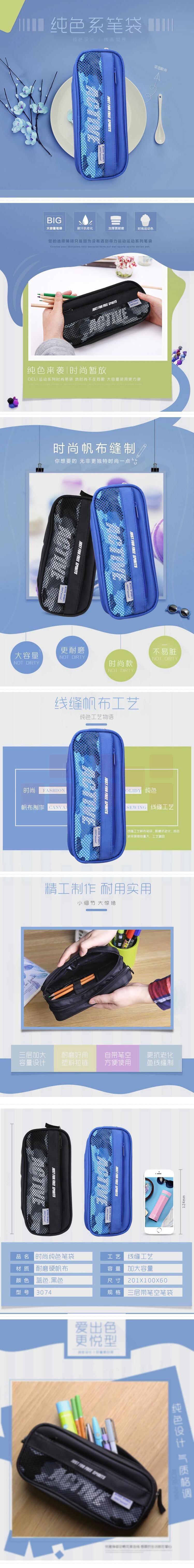 得力3074 运动笔袋 文具袋 袋鼠收纳袋 黑色