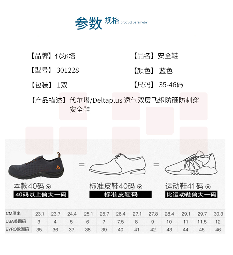 代尔塔 301228 透气双层飞织防砸防刺穿安全鞋