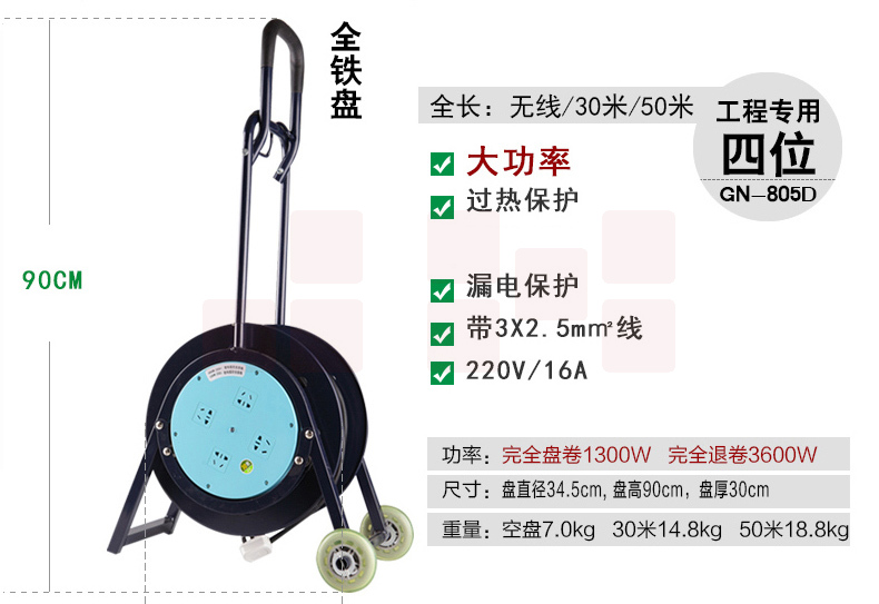 公牛GN-805D 30米绕绕线器线盘线轴2.5平方