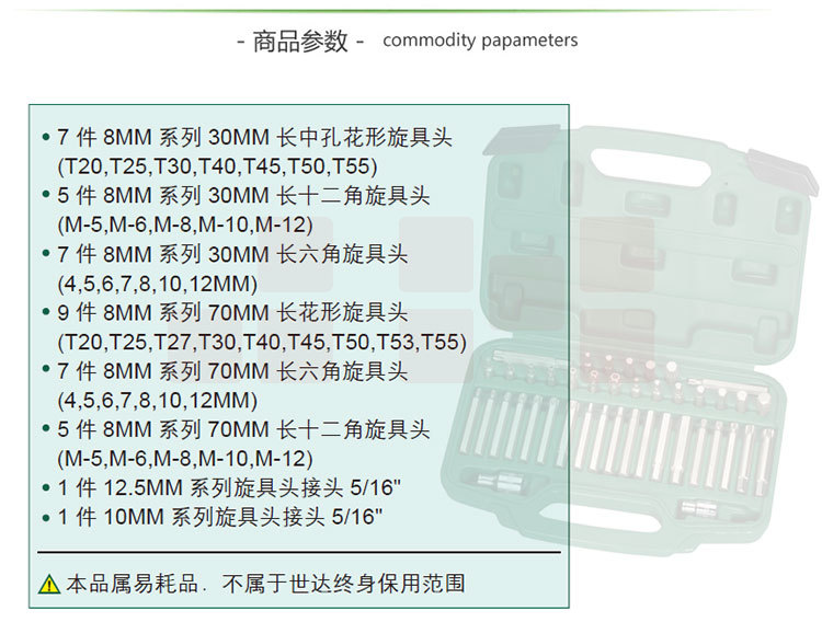 世达(SATA)42件8MM系列旋具头组套货号09327