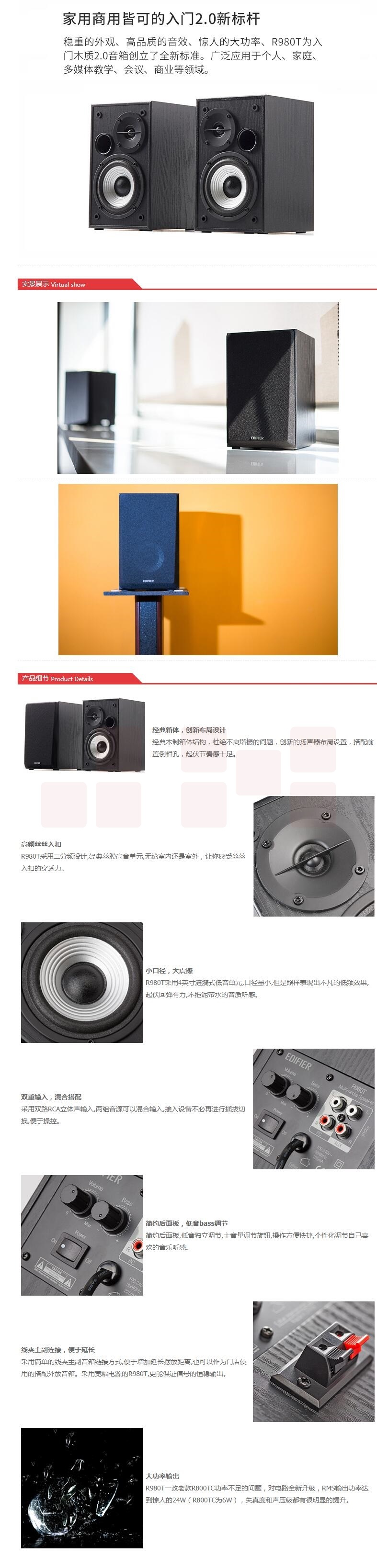 漫步者(EDIFIER)R980T 入门级多媒体2.0音箱 音响 电脑音箱