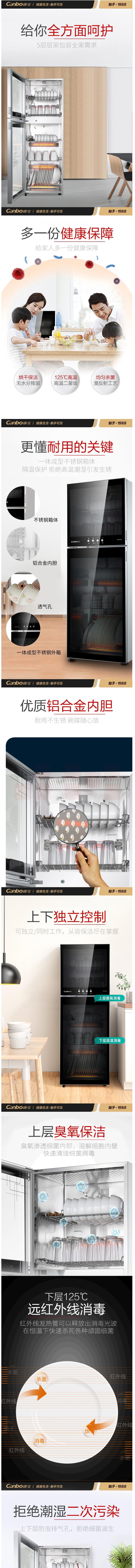 康宝 XDZ130-YD28 小型立式臭氧杀菌 高温消毒厨房碗柜 独立控制二星消毒柜 130升