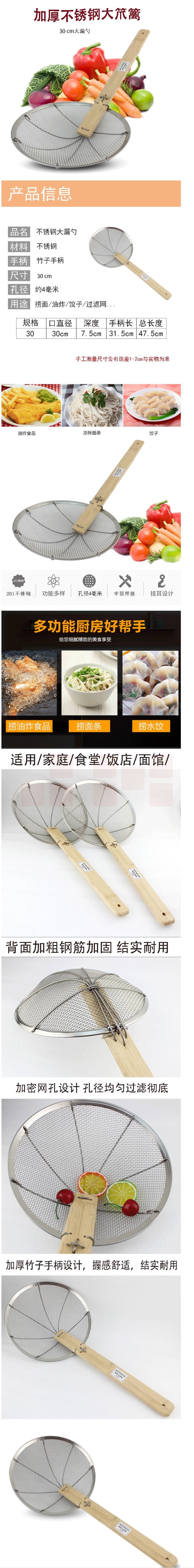 饭店油炸过滤网勺 不锈钢木把笊篱 30cm