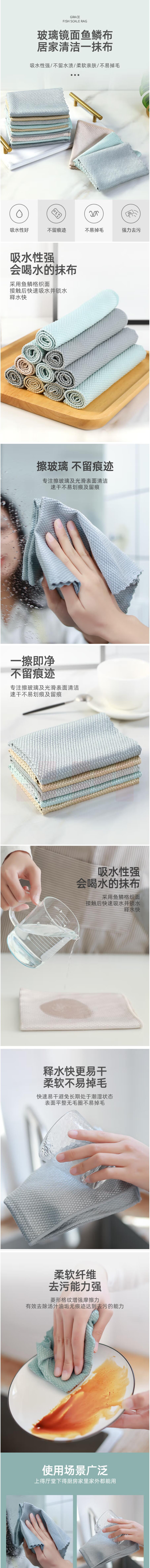 洁丽雅 40*30cm 擦玻璃鱼鳞抹布不掉毛毛巾(5条/包)