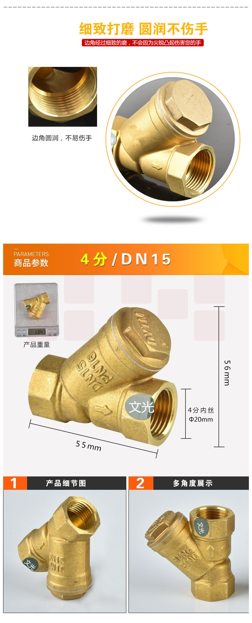 黄铜Y型过滤器增压水泵中央空调管道阀门4分DN15过滤阀