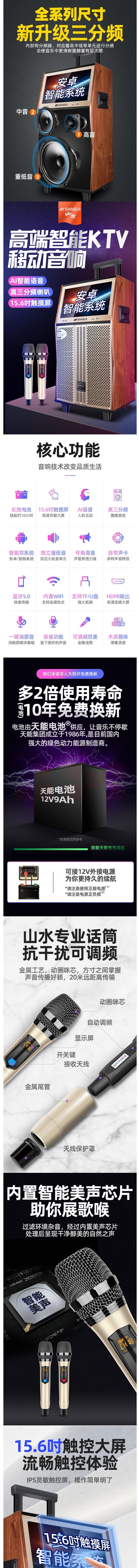 山水(SANSUI)QX12 广场舞音响带显示屏 户外演出音箱无线话筒 15.6吋大屏 1只无线话筒