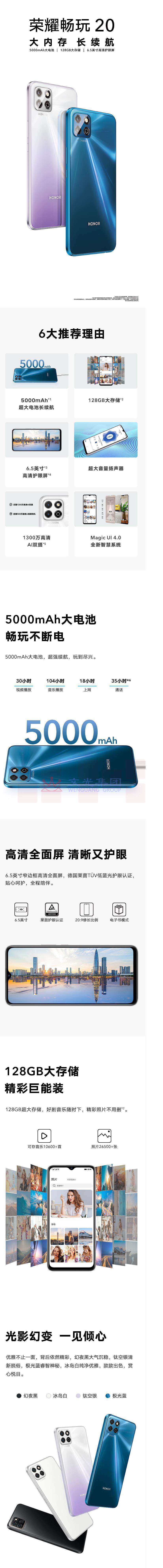 荣耀畅玩20 手机 5000mAh超大电池续航 6.5英寸大屏 6GB+128GB 极光蓝