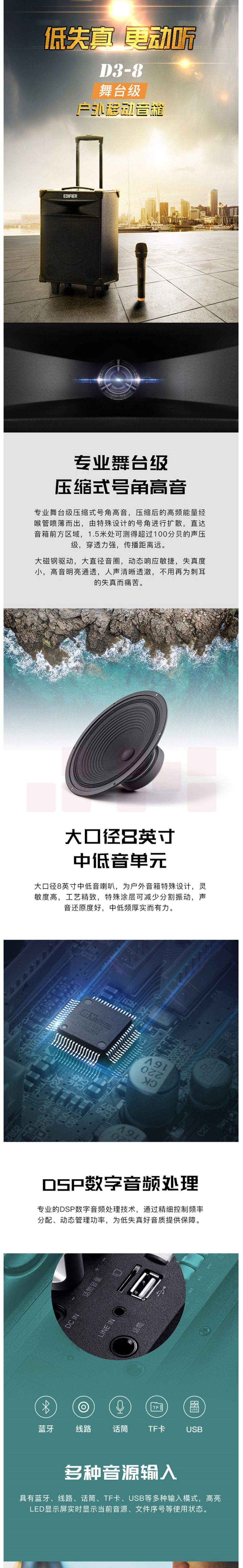 漫步者(EDIFIER)D3-8 8英寸音响 会议音响 蓝牙拉杆音箱