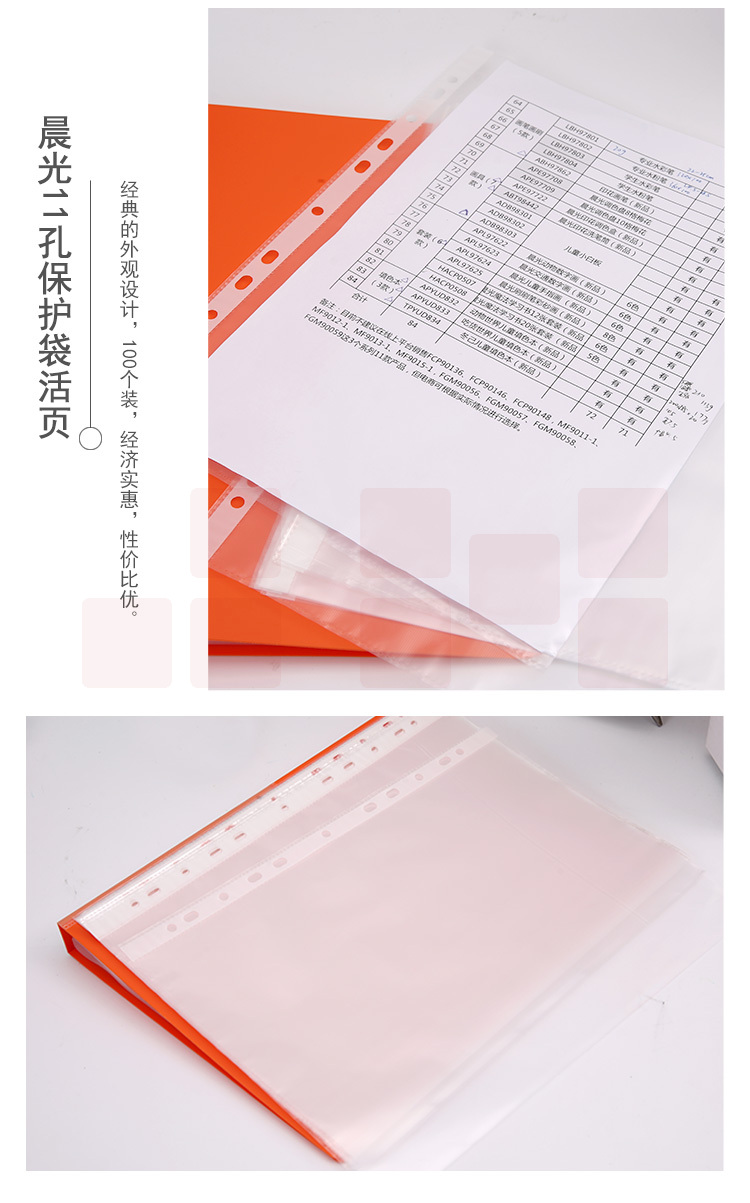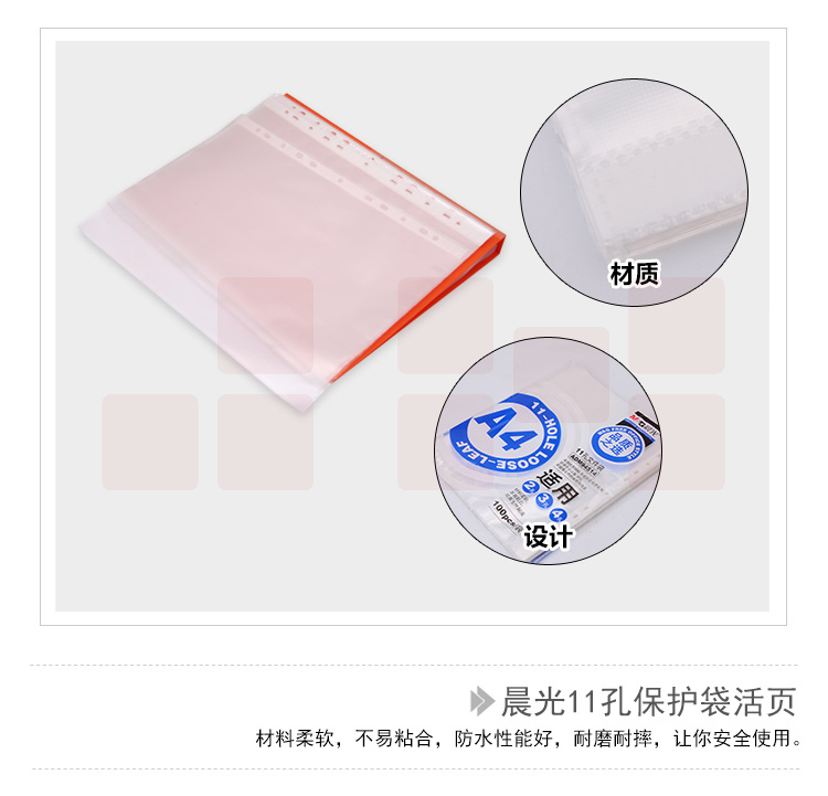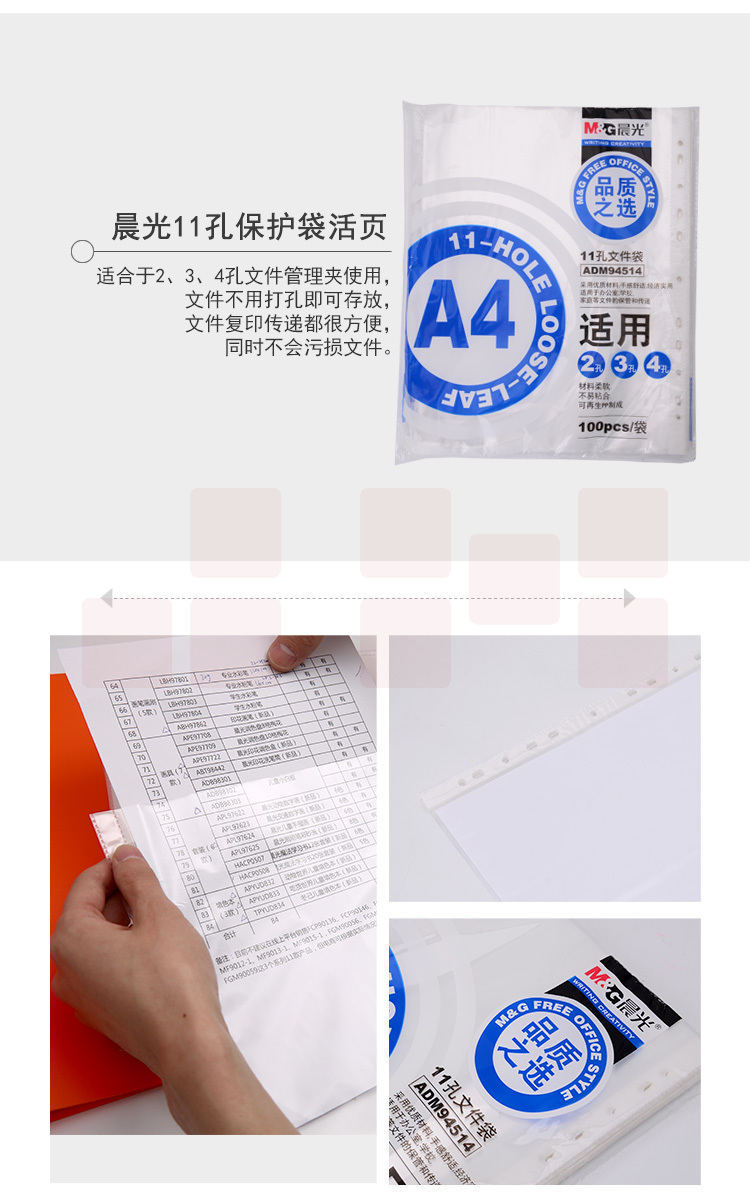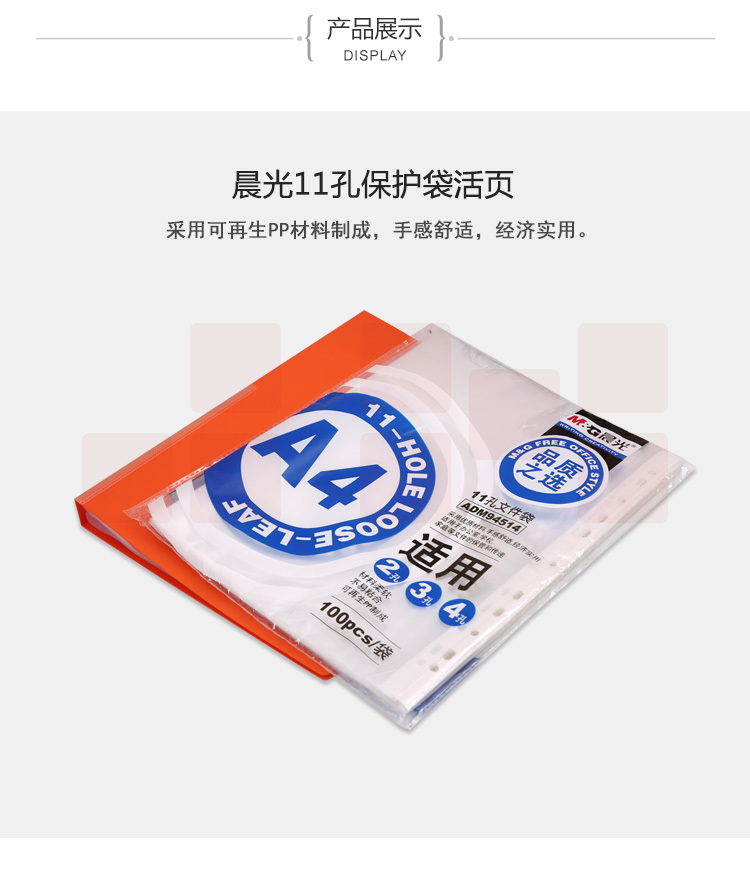 晨光 ADM94514 A4透明资料袋/活页文件11孔 100页/包