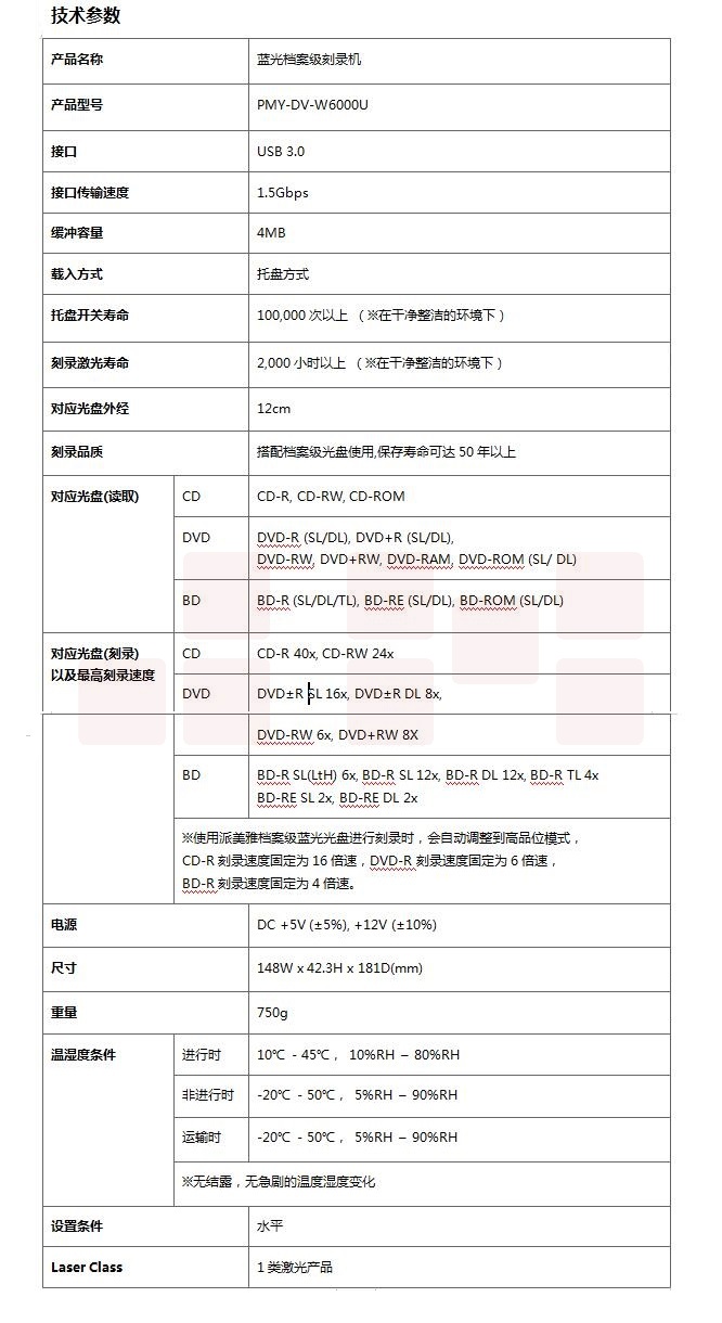 派美雅 档案级蓝光外置光盘刻录机 DV-W6000U