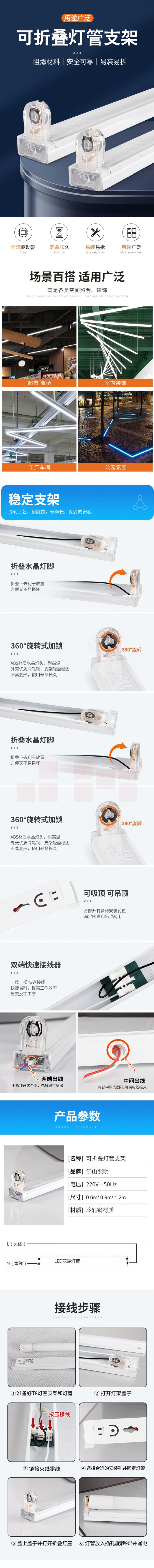 佛山照明T8双端LED灯管支架可折叠空支架单管平盖1.2米