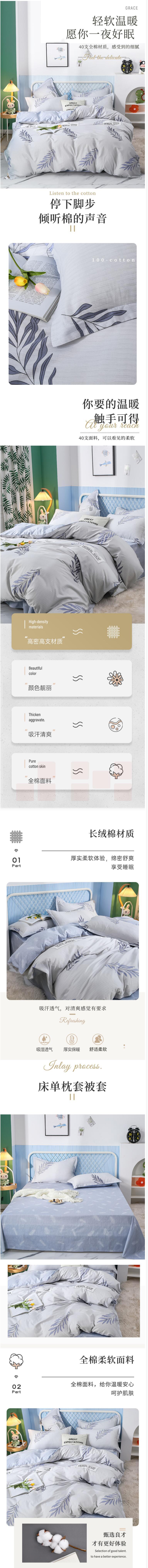 洁丽雅 纯棉床上用品三件套 单人床全棉被套床单 花色随机 货号:JC