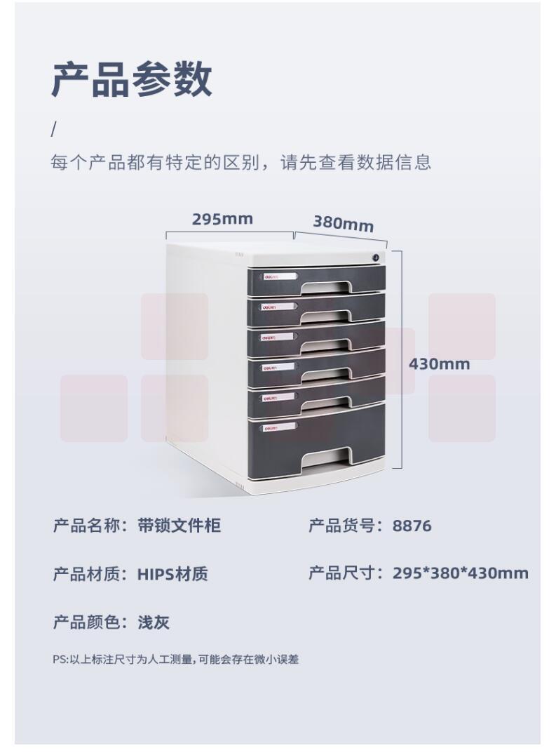 得力8876-6层文件分类收纳盒带锁295*380*430mm(浅灰)