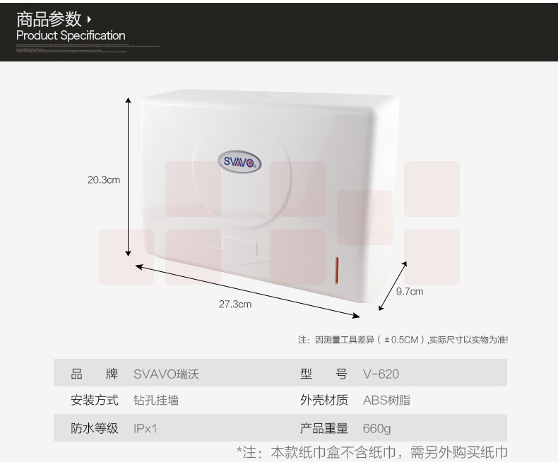 瑞沃SVAVO V-620壁挂擦手纸盒厕纸盒