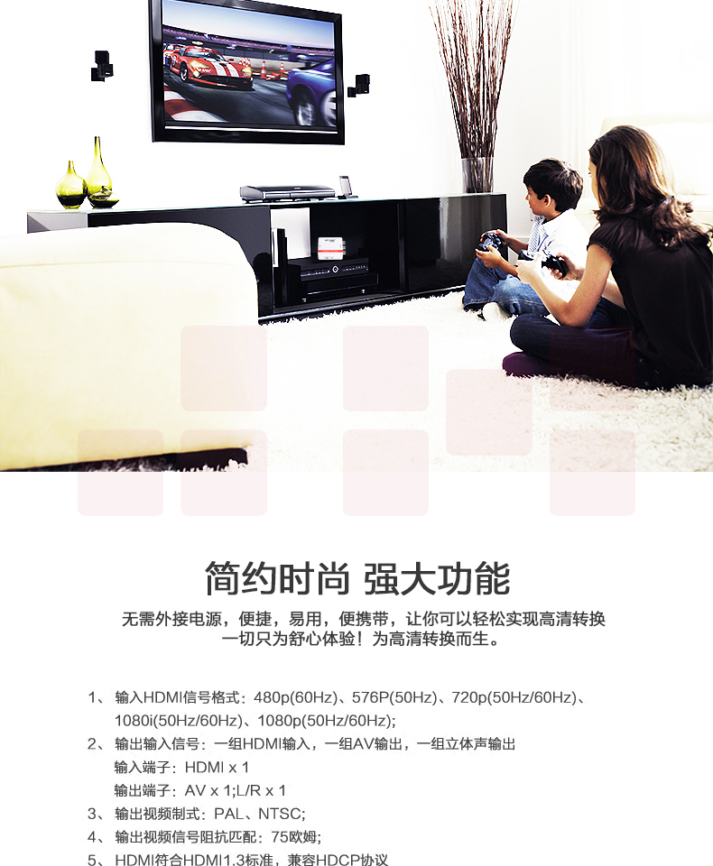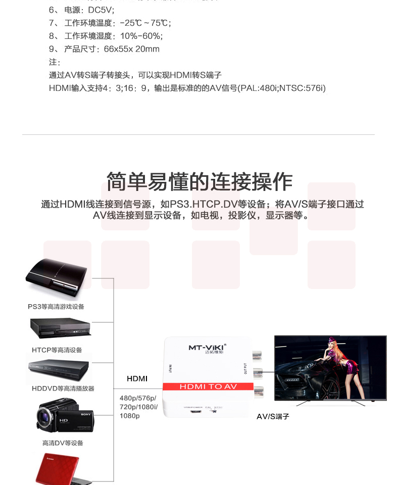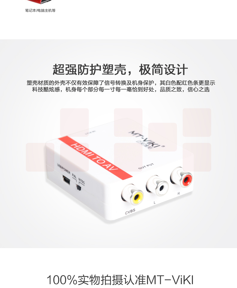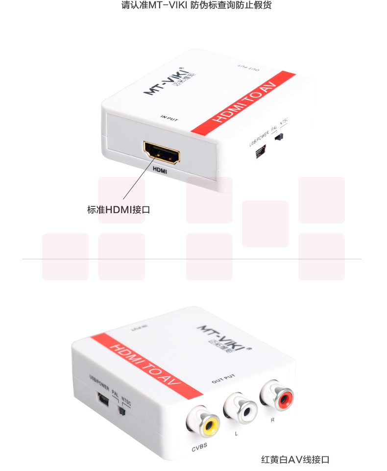 迈拓维矩 MT-H-AV03 HDMI转莲花视频高清1080P音视频转换器红白