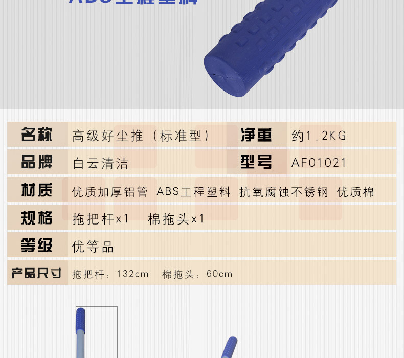 白云 110CM 尘推大堂拖把尘推铝合金杆棉质拖布