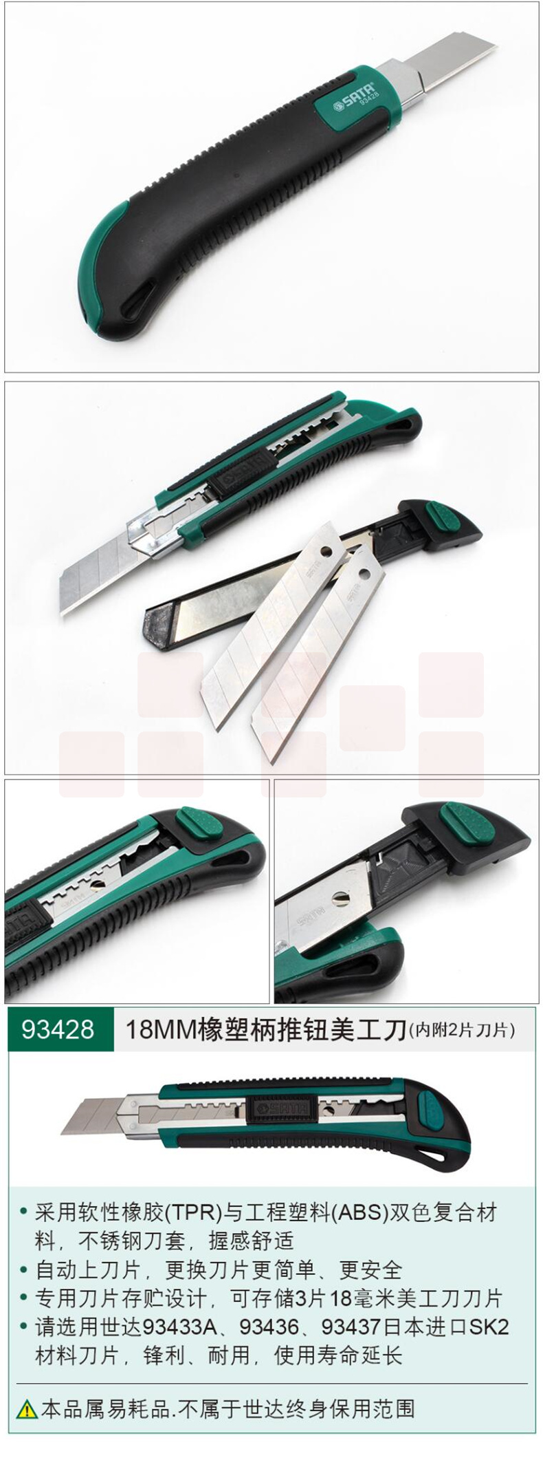世达(SATA)橡塑柄推钮美工刀8节18x100MM 93428