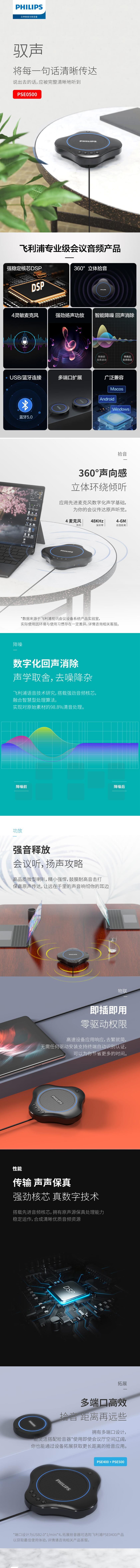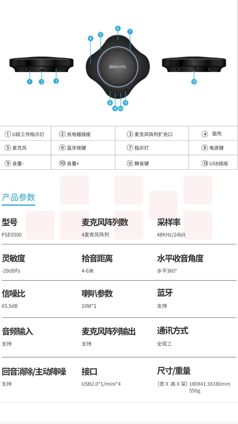飞利浦PSE0500 视频会议全向麦克风 免驱无线蓝牙(适用40平米以内会议室)