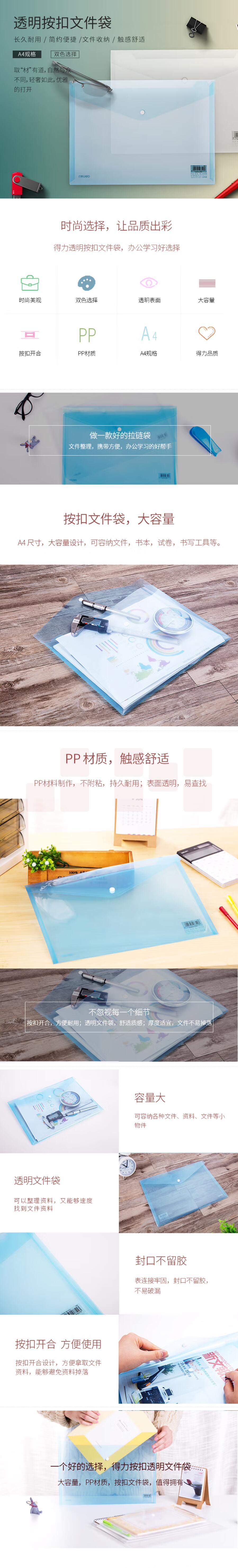得力 A4 8308蓝色按扣文件袋 资料收纳袋(10个/包)