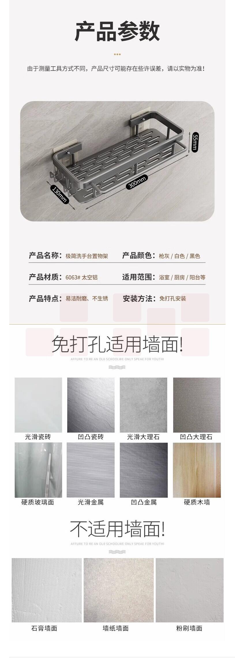 卫生间置物护栏 太空铝免打孔挂钩 壁挂式 单层加厚护栏 货号:JC