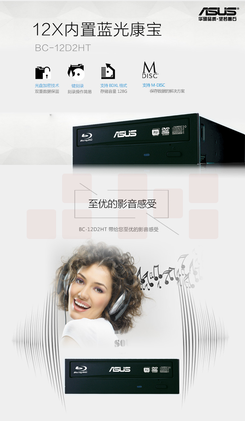 华硕(ASUS) 12倍速 SATA 蓝光Combo 黑色(BC-12D2HT)
