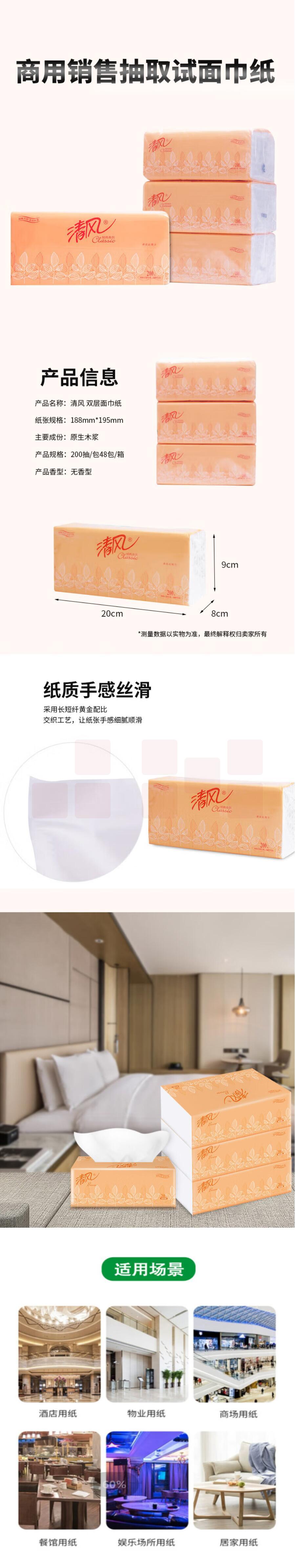 清风 抽纸 面巾纸 BR38AB 2层200抽 3包/提 188*195MM