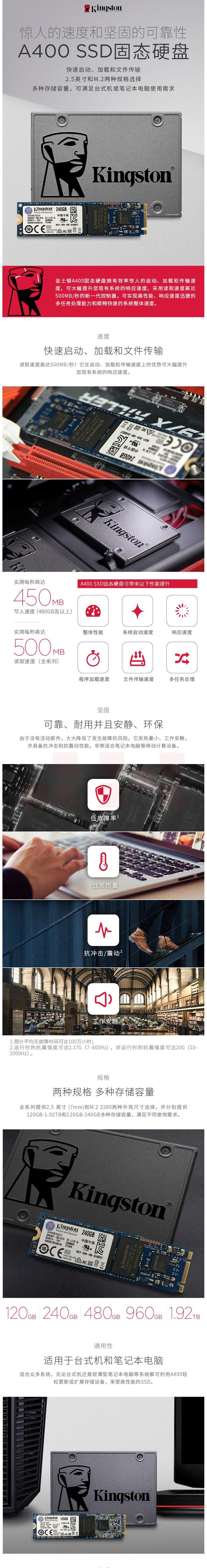 金士顿 240GB SSD固态硬盘 SATA3.0接口A400系列