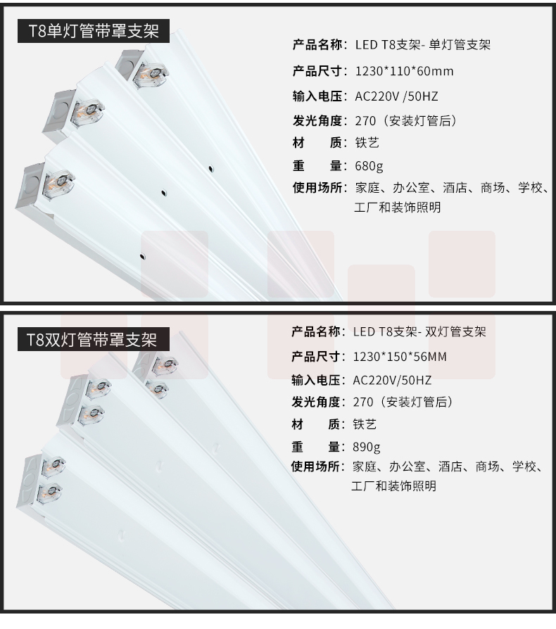 佛山(FSL)T8 双灯管带罩支架1.2米双端供电中间出线 LED灯管专用(不含安装)