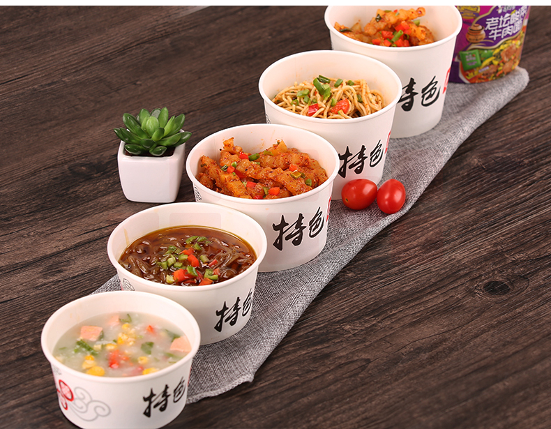 加厚一次性特色小吃纸碗 打包汤面 泡面碗 饭盒打包盒外卖酸辣粉纸碗家用 650毫升 100只装