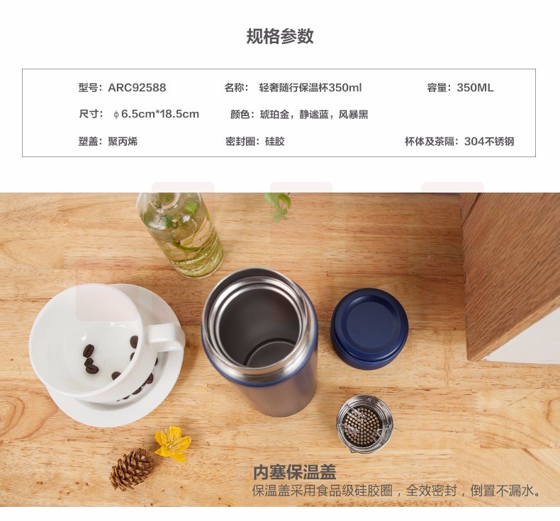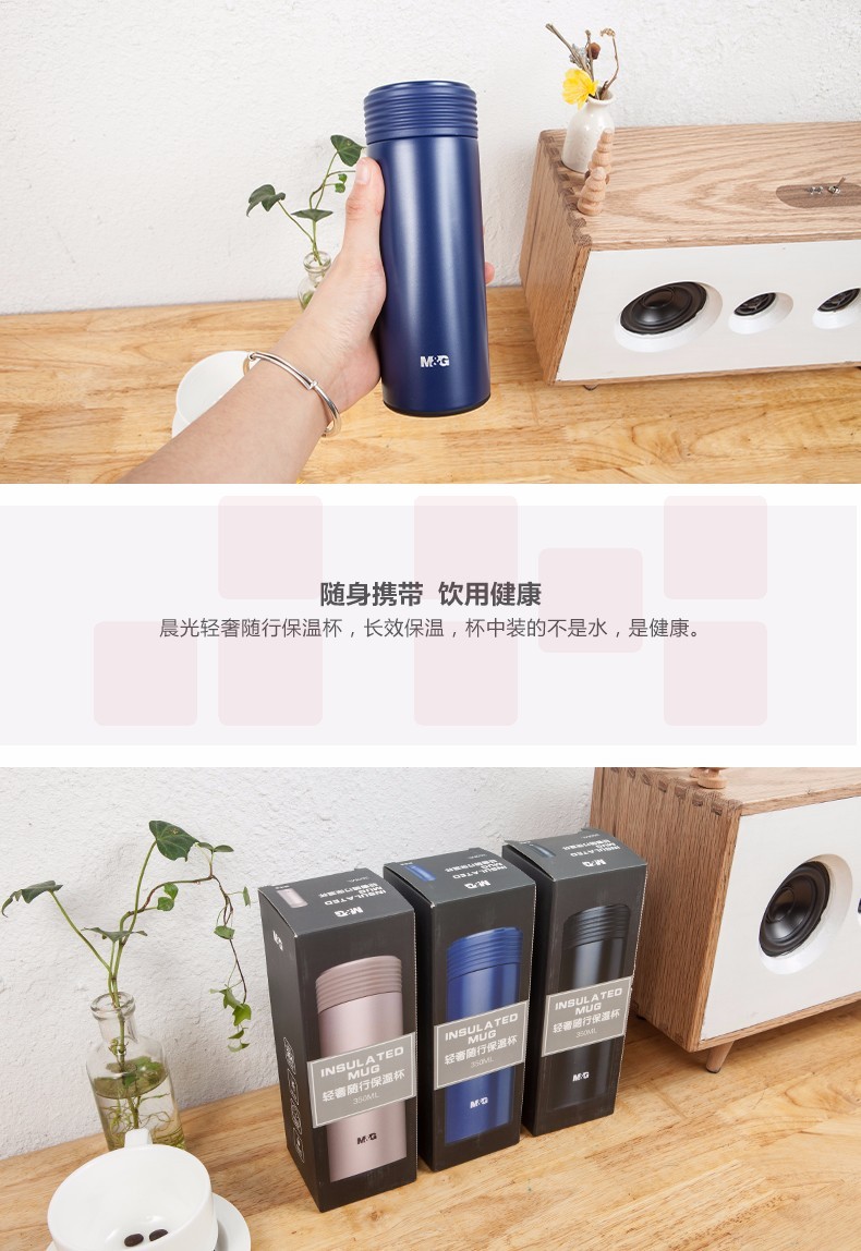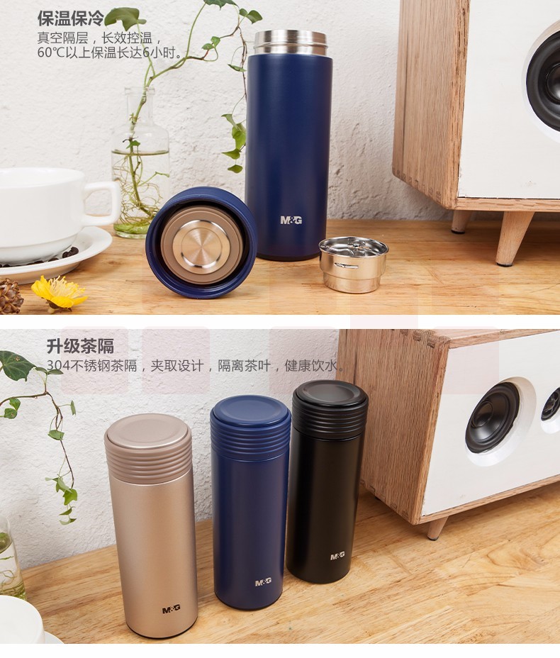 晨光(M&G)轻奢随行保温杯水杯350ml大容量商务杯ARC92588金蓝黑颜色随机