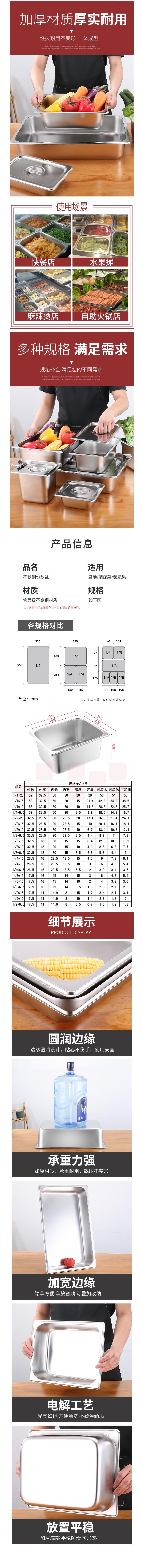 不锈钢盆 食堂餐车打菜盆盛菜盆 53*32.5*6.5cm 货号:JC