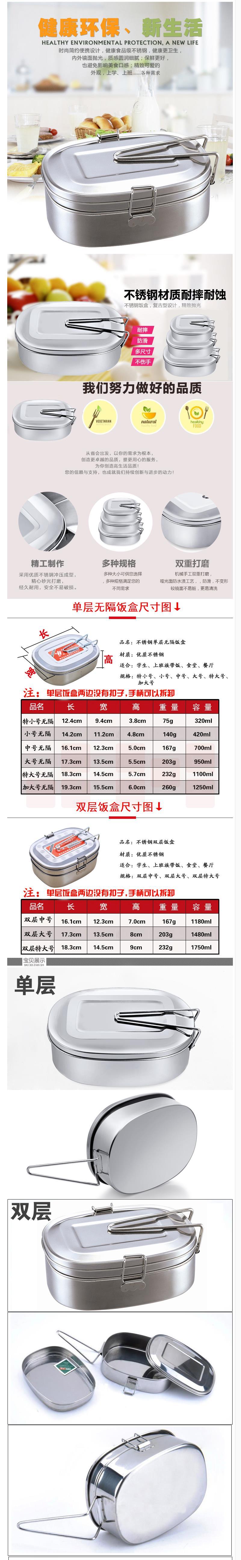 不锈钢餐盒 方形饭盒 便当盒 单层 17.3*13.5*5.5cm 货号:JC
