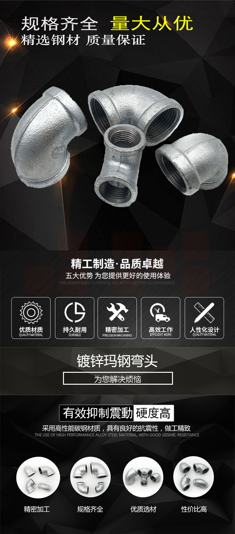 赣玛 (GANMA)正品加厚镀锌内丝弯头 螺纹弯头自来水管接50*20 60个/包